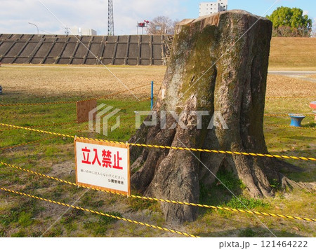伐採されたケヤキの切り株