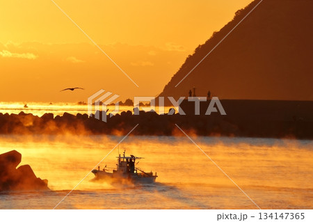 久礼湾に立ち上る気嵐 冬 (高知県 中土佐町)