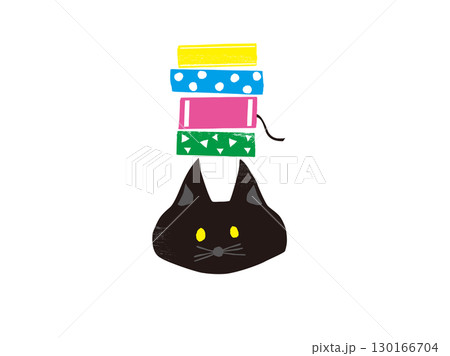 頭の上に本を乗せる黒猫