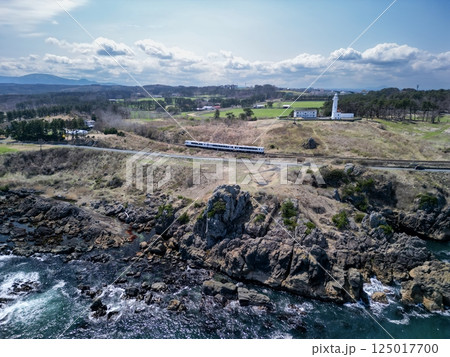 「青森県」種差海岸を走る東北エモーション「レストラン鉄道」・八戸市