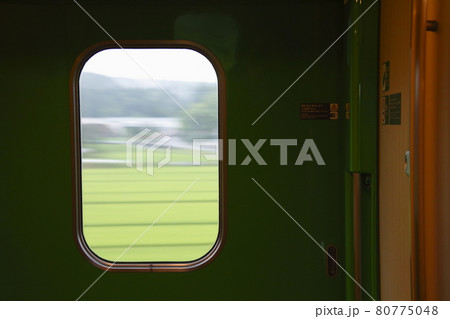 東北新幹線H5系の乗降扉より望む田園風景