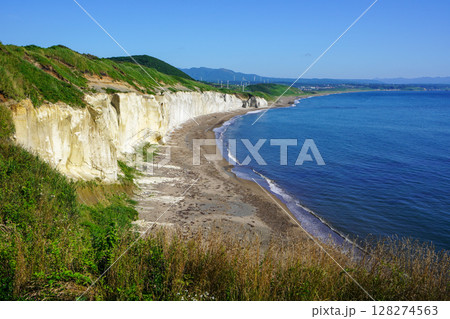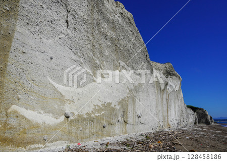 (北海道乙部町)青い空と海、白い断崖・シラフラ