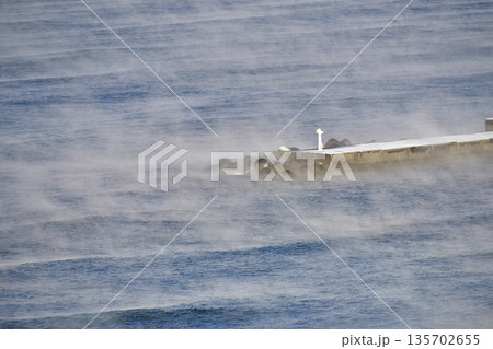 冬の北海道乙部町で海面の気あらしの風景を撮影