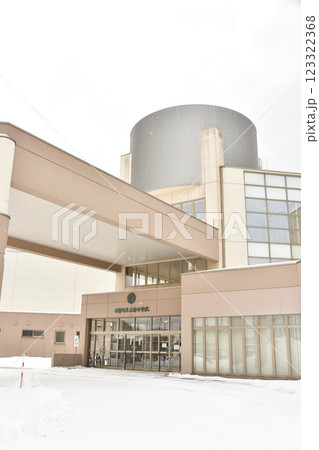 冬の北海道乙部町で町立乙部中学校の風景を撮影