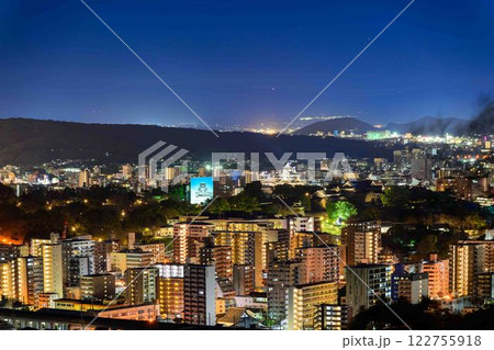 (熊本城周辺風景)夜空と都市景観の夜景に映えるスポットから観える絶景パノラマ風景(花岡山展望台)