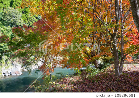 秋の色に染まる菊池渓谷(熊本県菊池市)