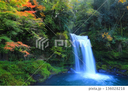 秋の宮崎県高千穂町 紅葉の高千穂峡 おのころ池