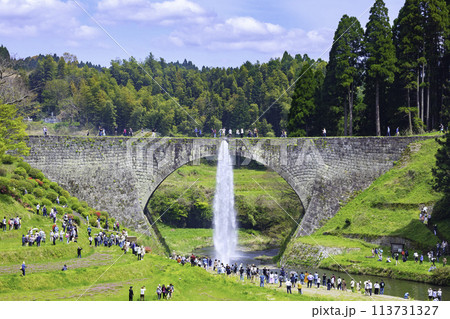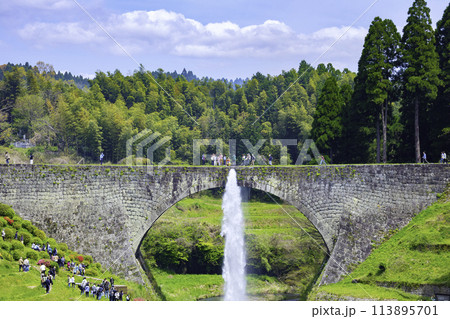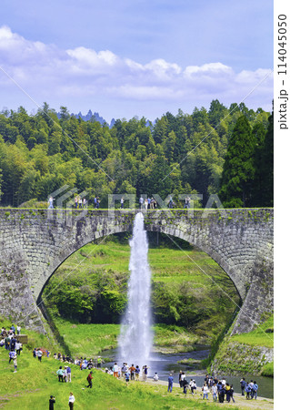 山都町のシンボルである美しい通潤橋 豪快な放水 (熊本県上益城郡)