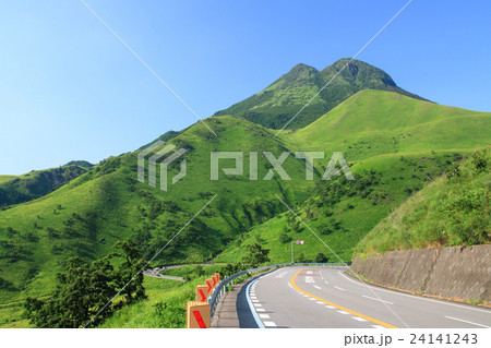 大分県 初夏、新緑のやまなみハイウェイとくじゅう連山