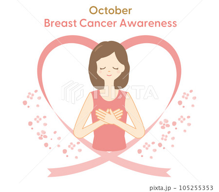 乳がん早期発見キャンペーン・ピンクリボンキャンペーンのイラスト(胸を抱きしめる女性)
