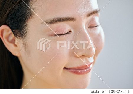 目を閉じる30代女性の肌