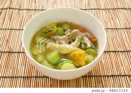 spicy boiled spicy mixed vegetable curry soup on bowl