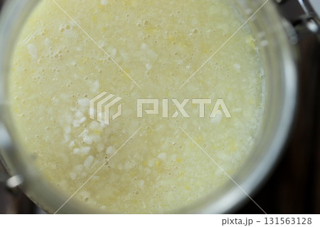 材料を混ぜたばかりで泡が出始めた自家製レモン塩麹