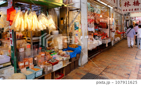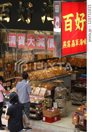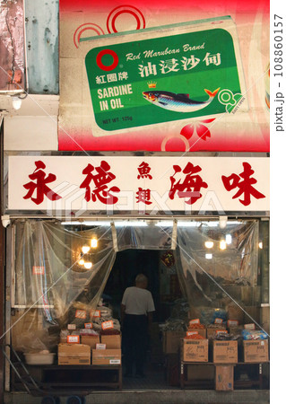 香港の乾物街。高価なフカヒレ(乾貨)などを売る香港島の店