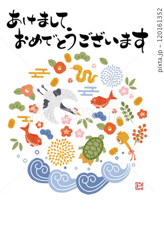 2025年巳年年賀状 鶴亀や松竹梅など縁起物のイラスト