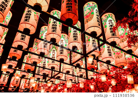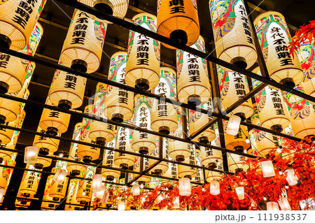 大須万松寺天井から吊り下がる沢山の身代不動明王の提灯