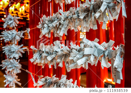 大須万松寺白雪稲荷の結び付けられた沢山のおみくじ