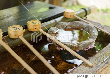 大阪 福島聖天 了徳院 手水舎と桜の花びら