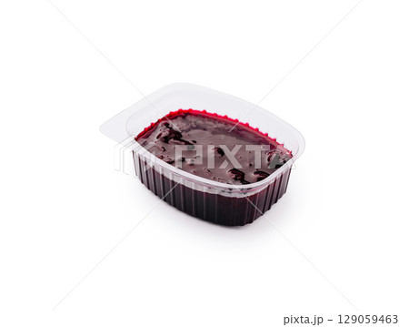 Rich berry jelly in a clear plastic container ready for serving