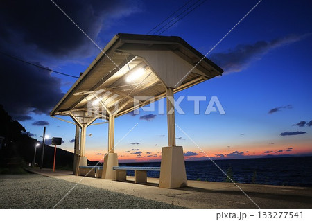 愛媛県伊予市 夕焼けに染まるJR下灘駅