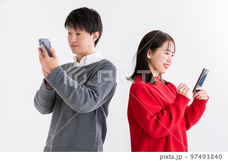 アジア人の若いカップルまたは夫婦のイラスト素材