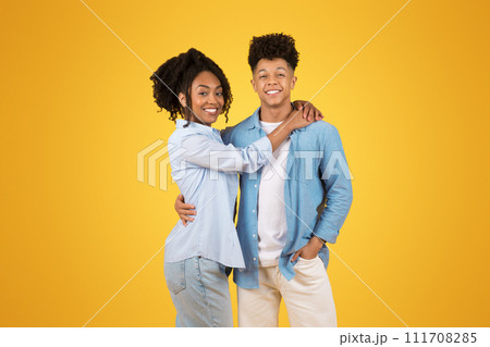 Romantic Young Black Man Piggybacking His Cheerful Girlfriend, Having Fun Together