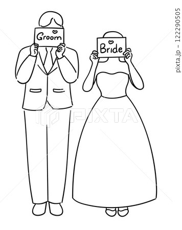 Bride and groom, cute bride and groom covering their faces with a sign that says Groom and Bride