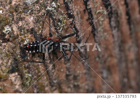 生き物 昆虫 セマダラサシガメ、二センチほどもありそうな大型のサシガメ。石垣島のバンナ公園にて