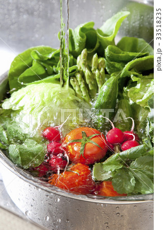 シンクで洗う色々な野菜
