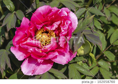 鮮やかな、紫の大きな花を咲かせた、ボタン
