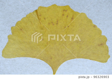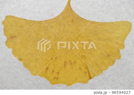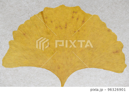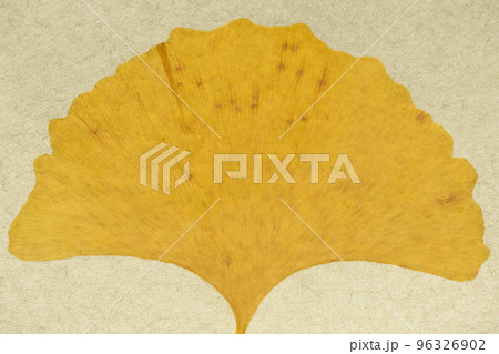 イチョウの葉と葉脈(和紙背景)