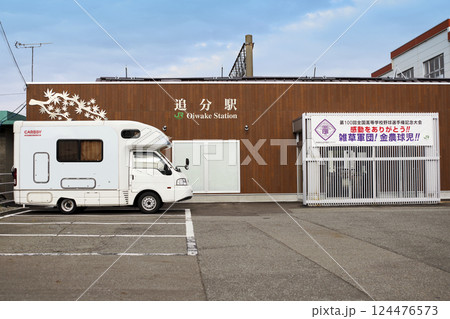 日本の地方の町並み JR追分駅前の駐車場