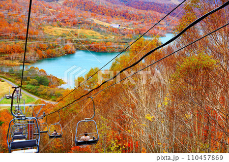 新潟湯沢町 苗場ドラゴンドラから見る絶景の紅葉と二居湖