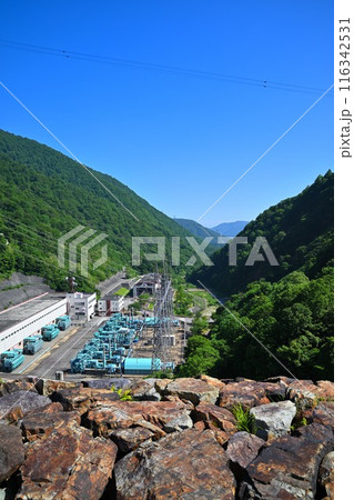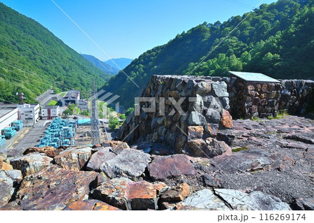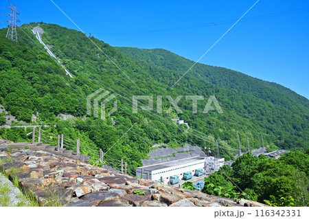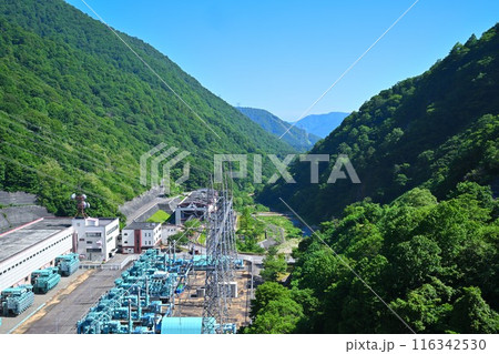 奥清津発電所 変電所 二居ダム 清津川 新緑の景色 新潟県