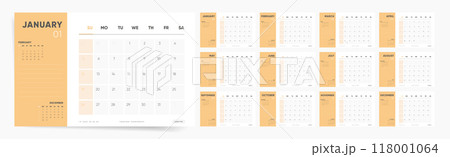Calendar 2026 year. Week starts on Sunday. Vector illustration