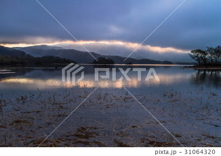 裏磐梯・桧原湖 神秘的な光の帯が現れた夜明け