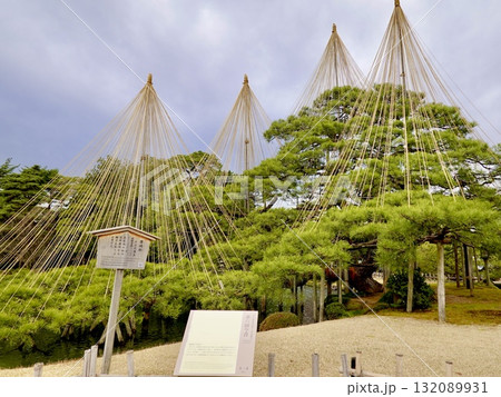 兼六園 雪吊りされた唐崎松が見える風景 石川県金沢市