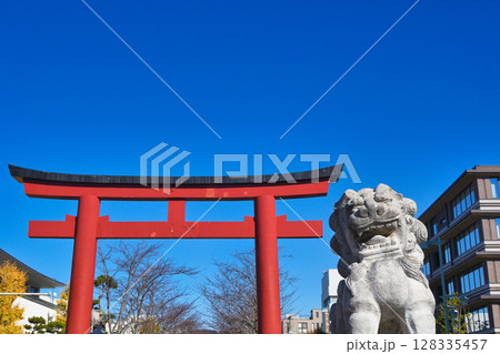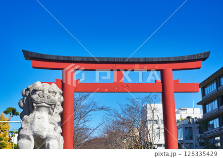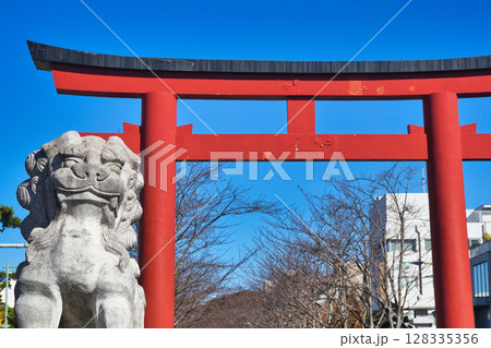 鶴岡八幡宮 二の鳥居と狛犬と青空(神奈川県鎌倉市)