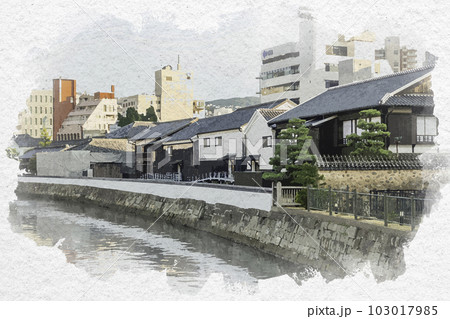 水彩画風 長崎 出島復元建物 長崎県長崎市
