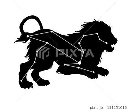 夜空に浮かぶしし座のイラスト(獅子と星座線)