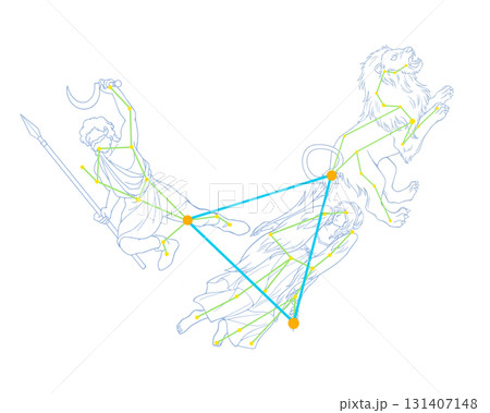 春のダイヤモンド(星座線)のカラー線画イラスト