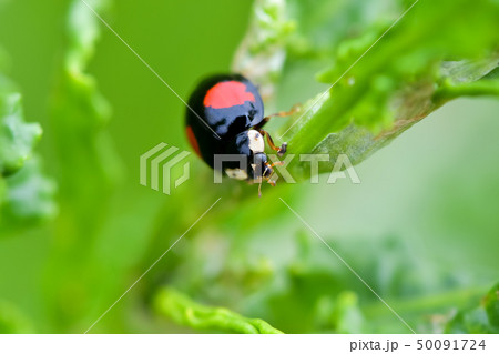 益虫の「ナミテントウ」二紋型 黒地赤二紋 四紋型 黒地赤四紋 二匹 縦列