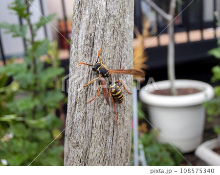 生き物 昆虫 フタモンアシナガバチ、腰に二つのハート形(に見えますよネ)が目印のおとなしいアシナガバチです
