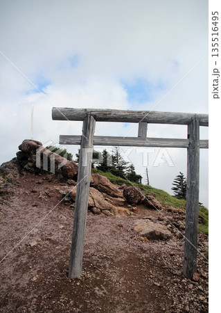 男体山の山頂の鳥居からみた象徴的な剣