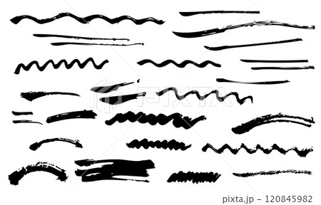 手書きの筆ブラシのイラスト アンダーライン 線 ライン 黒