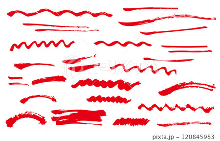 手書きの筆ブラシのイラスト アンダーライン 線 ライン 赤