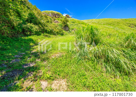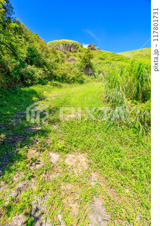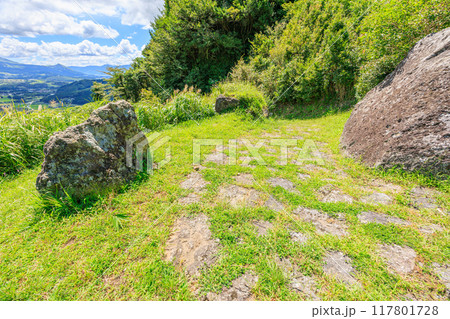 初夏の阿蘇 豊後街道 二重峠の石畳 (熊本県)