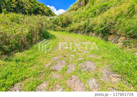 夏の豊後街道 二重峠石畳 熊本県阿蘇市