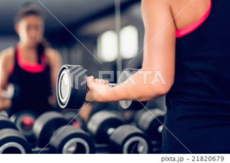 Muscular man working out in gym doing exercises with dumbbells at biceps, strong male naked torso