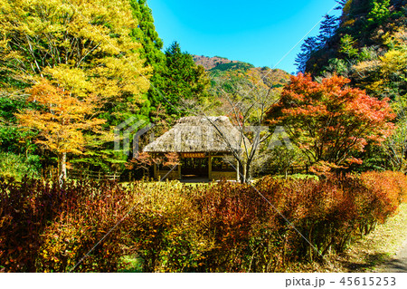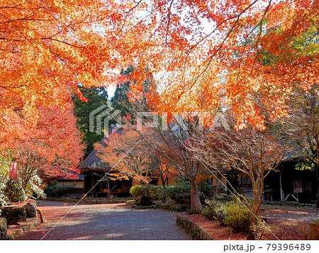 五家荘 平家の里の美しい紅葉と古民家の建物 (熊本県八代市)